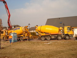 Pünktlich auf die Minute rollte der erste Betonlaster an und noch bevor er leer war, stand der 2.Laster schon in den Startlöchern.